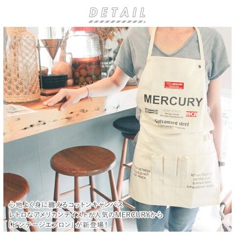 ◆心地よく身に纏えるコットンキャンバス。レトロなアメリカンテイストが人気のMERCURYの「ビンテージエプロン」