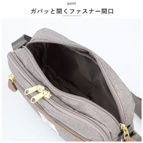 ◆キュッシユレス派にも嬉しいお財布機能付きサブルームはダブルファスナー式&中身がこぼれ落ちにくいササマチ付き。
