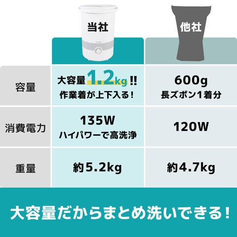 - 洗濯容量:1.2kg