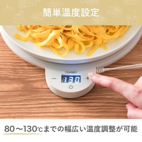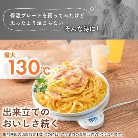 保温プレートは80℃から130℃までの幅広い温度設定に対応。お好みの温度で温かさを保つことができます。