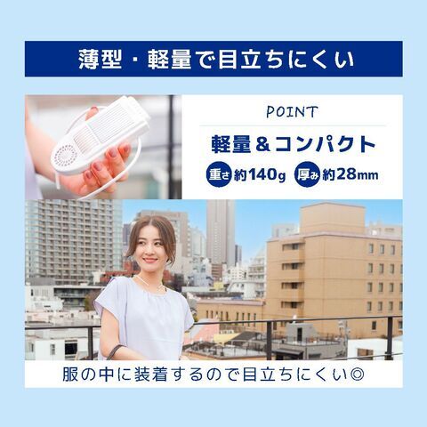 セナクールPlusは薄型で、軽量。服の中に入れると目立たず、涼しさを得られます。