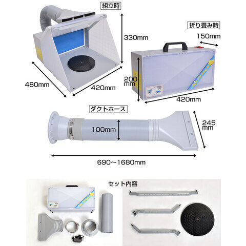 ●プラモデルなどの塗装の際には換気が必須! このエアブラシ用ブースは、作業場所と換気扇とダクトがこの1台で全てまかなえる!