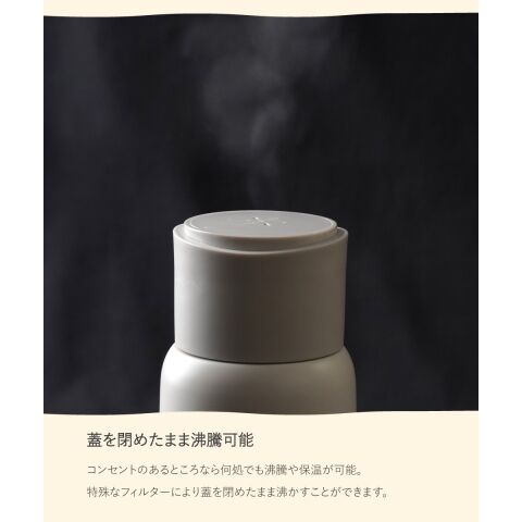 コンセントのあるところなら何処でも沸騰や保温が可能。特殊なフィルターにより、蓋を閉めたまま沸かすことができます。◆水筒のように持ち運べる