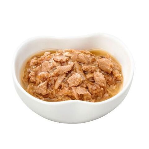 魚介類(カツオ、マグロ、青魚、フィッシュペプチド)、鶏肉、たんぱく加水分解物、小麦グルテン、油脂類(鶏脂、大豆油)、乾燥全卵、エンドウたんぱく、糖類(ショ糖、オリゴ糖)、乾燥卵黄、増粘安定剤(加工でん粉、増粘多糖類)、調味料、ミネラル類(Ca、P、Fe、Cu、Mn、Zn、I、Se)、ポリリン酸Na、キシロース、ビタミン類(A、D、E、K、B1、B2、B6、B12、ナイアシン、パントテン酸、葉酸、ビオチン、コリン)、タウリン