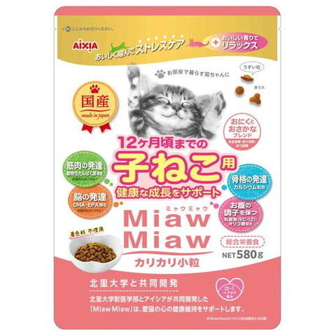 アイシア MiawMiaw カリカリ小粒 子ねこ用 おにくとおさかなブレンド 580g MDM1コツブコネコニクサカナ580 【返品種別B】