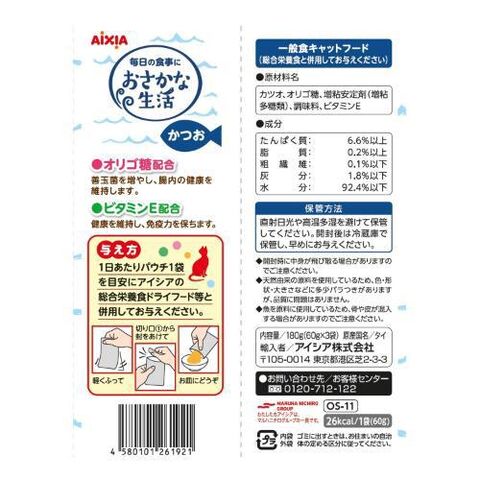アイシア おさかな生活 かつお 180g(60g×3袋) オサカナセイカツカツオ 180G 【返品種別B】