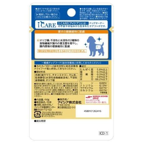 アイシア i CARE ドッグ 腸内環境ケア ささみ とろみタイプ 40g ICD-1ICAREチヨウナイケア40G 【返品種別B】
