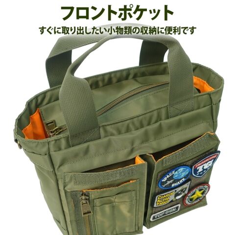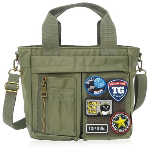 トップガン ナイロンツイル ワッペン ミドルトートバッグ(カーキ) 20369011-KHK 【返品種別A】