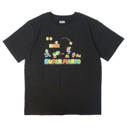 ファインプラス マリオ ステージTシャツ(ブラック・サイズ:M) 22863178-BLK-M 【返品種別A】