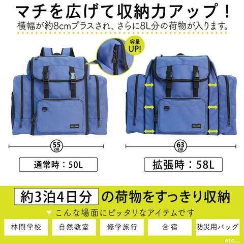 ◆林間学校や自然教室などの際に活躍する大容量リュック