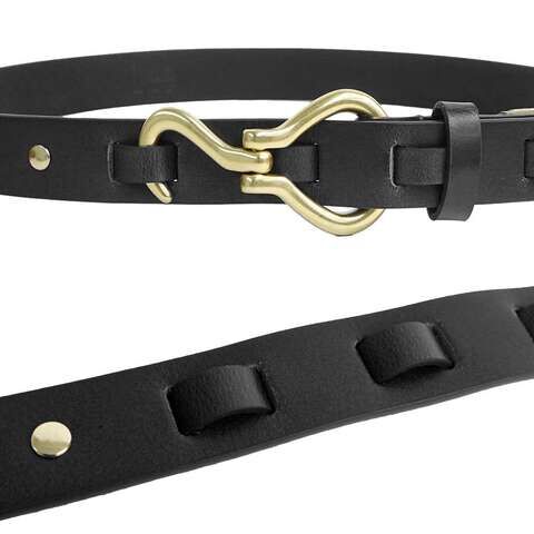 ◆アンティーク調のゴールドフックでサイズ調節できる本革ベルト