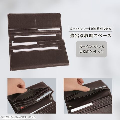 ◆多数のカードポケットや仕切り付きの紙幣収納、ファスナー式の小銭入れなど、機能性も抜群です。