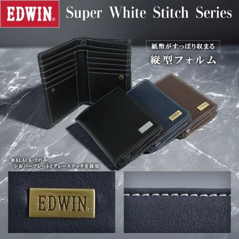 EDWIN スーパーホワイトステッチ 深札入れ 二つ折財布(ネイビー) エドウィン 22269324-NVY 【返品種別A】
