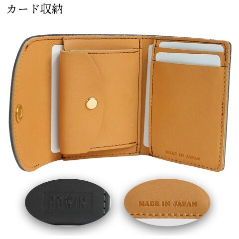 EDWIN 栃木レザー 日本製アニリン 三つ折財布(ブラック) エドウィン 22269330-BLK 【返品種別A】