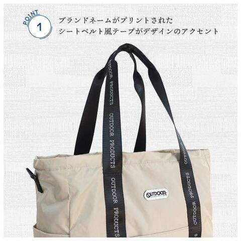 OUTDOOR PRODUCTS ラスターツイル ロゴプリント トートショルダーバッグ(ベージュ) アウトドアプロダクツ 22469152-BEI 【返品種別A】