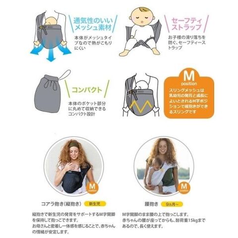 スタンダードな「コアラ抱き」と、腰まで下ろして使う「腰抱き」2種類の抱き方が可能。