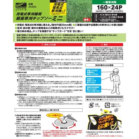 レモラツール 充電式草刈機用 軽量草刈りチップソー ミニ(160mm×刃数24P) 34493 【返品種別B】