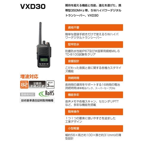 携帯型350MHz帯、5Wハイパワーデジタルトランシーバー「VXD30」