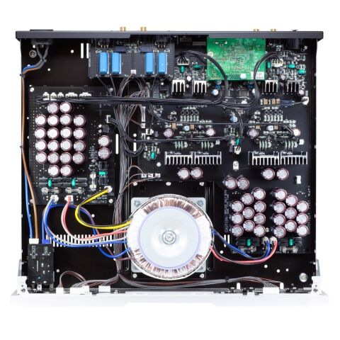 電源トランスには、260VA未含浸大型トロイダルトランスを採用。パワーアンプクラスの無帰還電源を構成します。