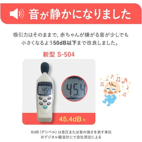 50dB以下まで改良し、他の据置き型電動吸引器の中でも高い静音性を実現しています。※メーカー調べ