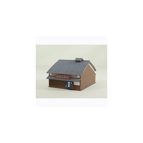 紙で作るストラクチャー。さんけいのみにちゅあーとシリーズ、商店Aです。昔から続く、まさに老舗といった商店の佇まいをモデル化しています。