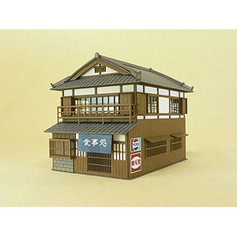 紙で作るストラクチャー。さんけいの情景シリーズHO、入母屋造りの町家です。食堂、住宅等をイメージしたつくりで。古い街並みのレイアウトに見事にとけ込みます。