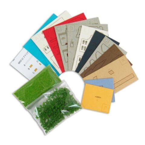 「サボイア」カラーの真っ赤な箱の中には、レーザーシートA~K(11枚)とベース(1枚)、 印刷シート(1枚)、緑セット(スポンジ、パウダー)、 組立て説明書が入っています。