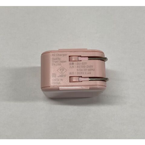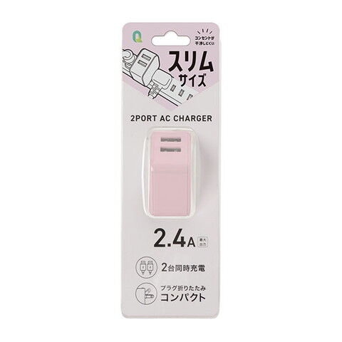QTJ(クオリティトラストジャパン) 2.4A対応 スリム USB-A×2ポート AC充電器(ピンク) QU-029PK 【返品種別A】