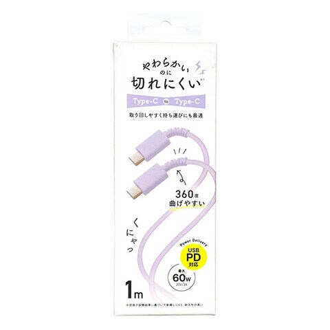 QTJ(クオリティトラストジャパン) PD60W対応 Type-C to Type-C やわらかいのに切れにくいケーブル 1m(パープル) QTC-0416PU 【返品種別A】