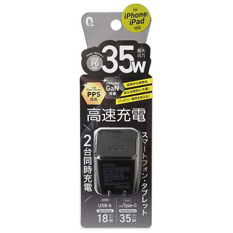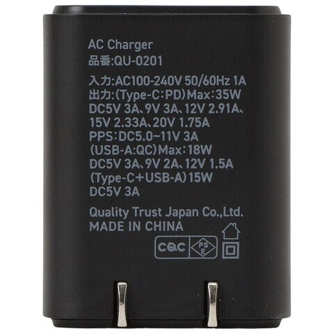 QTJ(クオリティトラストジャパン) PD35W対応 Type-C1ポート/USB1ポート ACアダプタ(ブラック) QU-0201BK 【返品種別A】