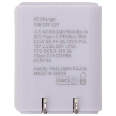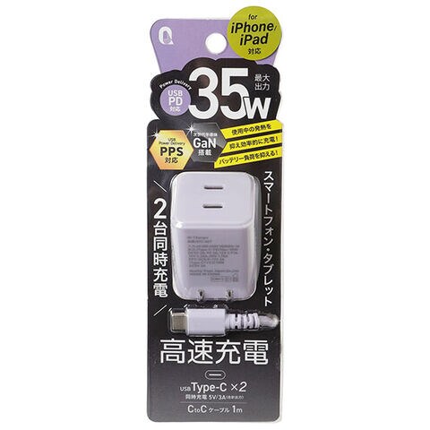 QTJ(クオリティトラストジャパン) PD35W対応 Type-C2ポート ACアダプタ+CTOCケーブル(1m/パープル) QTC-027PU 【返品種別A】