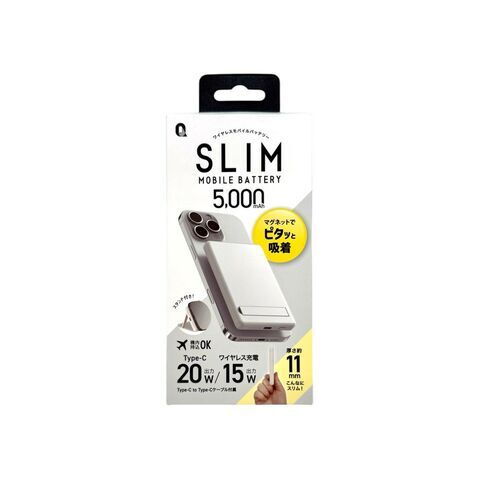 QTJ(クオリティトラストジャパン) Type-C1ポート ワイヤレスマグネット式モバイルバッテリー+CtoCケーブル 5000mAh(ホワイト) QTW-0500WH 【返品種別A】