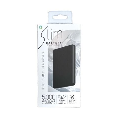 QTJ(クオリティトラストジャパン) Type-C1ポート/USB1ポート スリムモバイルバッテリー 5000mAh(ブラック) QTC-0507BK 【返品種別A】