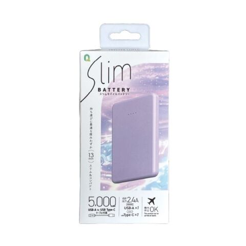 QTJ(クオリティトラストジャパン) Type-C1ポート/USB1ポート スリムモバイルバッテリー 5000mAh(パープル) QTC-0507PU 【返品種別A】