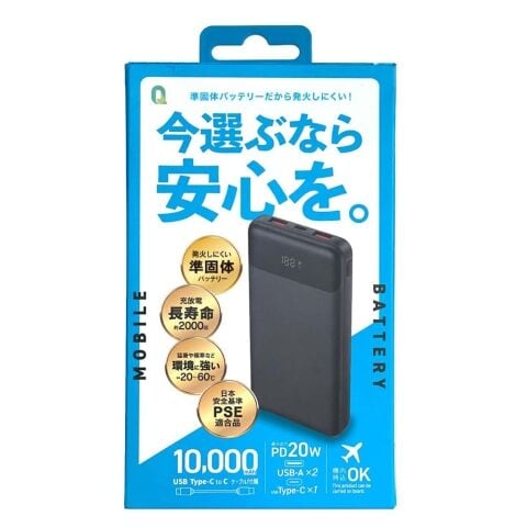 QTJ(クオリティトラストジャパン) PD20W対応 Type-C 1ポート/USB2ポート 準個体モバイルバッテリー 10000mAh(ブラック) QTJ QTC-0508BK 【返品種別A】のレビュー