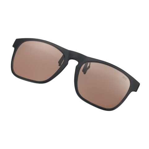 いつも使用している眼鏡の上から、クリップで挟むように着脱できる軽量な前掛けタイプ。