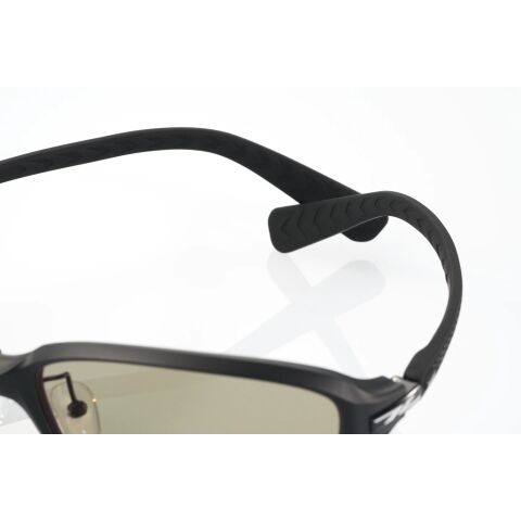 周辺視野まで鮮明に捉える広い視界。頭部を包み込むような掛け心地のロングテンプルが、グリップ効率と重量バランスを両立。