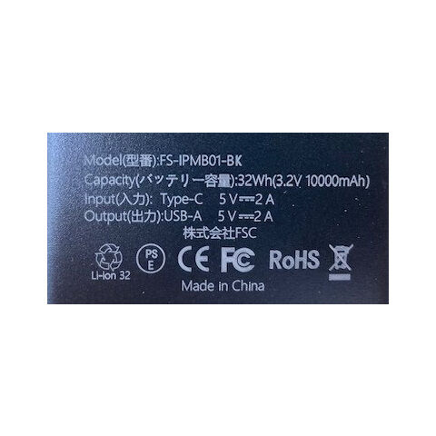 FSC リン酸鉄モバイルバッテリー 10000mAh Type-C×1/USB-A×1 FS-IPMB01-BK 【返品種別A】のレビュー