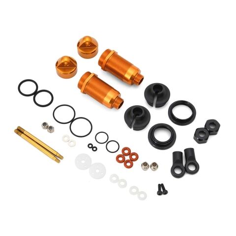 アルミ ダンパーキャップ×2 アルミ Oリングキャップ×2 ダンパースプリング ホルダー (下)×2 デルリンダンパーピストン×2 ダンパーロッドエンド×2 デルリンシャフト ガイド×2 アルミ ダンパーボディ(短)×2 ダンパースプリング リング (上)×2 スチール ピボットボール (S)×2 チタンコートフロント ダンパーシャフト(41.5mm)×2 Oリング P3×4 Oリング 8x0.8mm×2 Oリング 12x1.5mm×2 Oリング 14.5x1mm×2 Oリング 1.8x1mm×2 六角ビス 2x6mm×2 デルリンスペーサー 3x6.6x1.0mm×2 ワッシャー 2.6x6x0.5mm×2 ナイロンナット M2.5×2