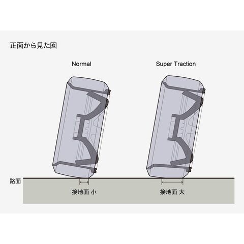 スーパートラクションホイールは、スタンダードホイールに比べて大きくしなります。