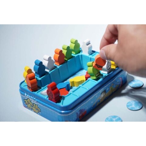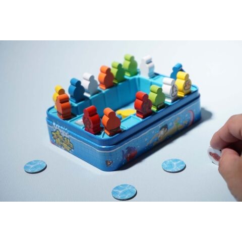 2:好きなコマを選んでプールサイドを1~3マス移動させよう。移動先に他のコマがあればプールに落とせるぞ!
