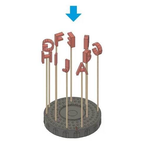 ご使用方法は、まず最初に塗装棒やプラ棒などに取り付けたパーツ(一個目)を起点マーク付近に置き、間隔を置きながらパーツを次々と円のように一周差し込みます。