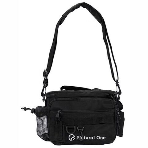 ◆ペットボトルホルダー、ロッドホルダー、ペンチホルダーが標準装備されたショルダーバッグ。