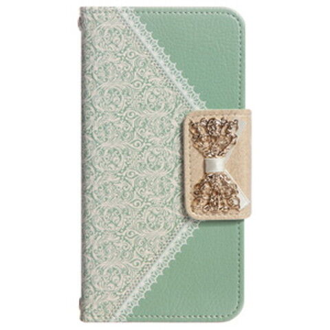 ソフトな感じのグリーンとベージュの色合いがゴールドのリボンとマッチして高級感を醸し出しおり、とてもお洒落なiPhoneケースです。