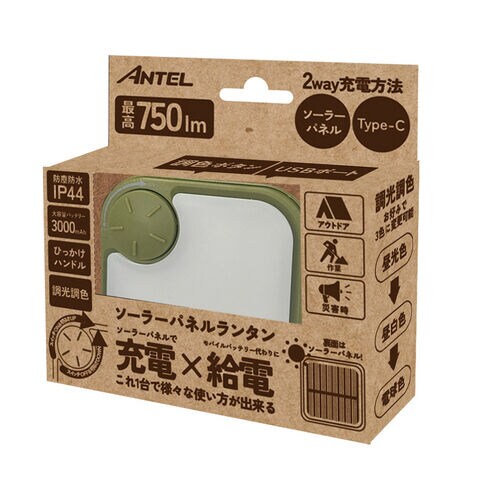 ANTEL USB/ソーラー充電式 LEDランタン(カーキ) HX10LT-013KK 【返品種別A】