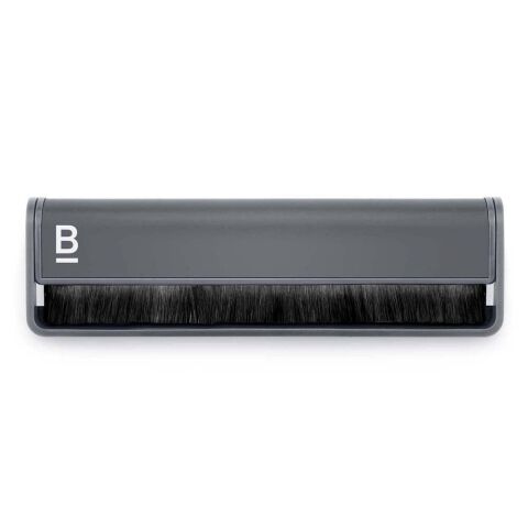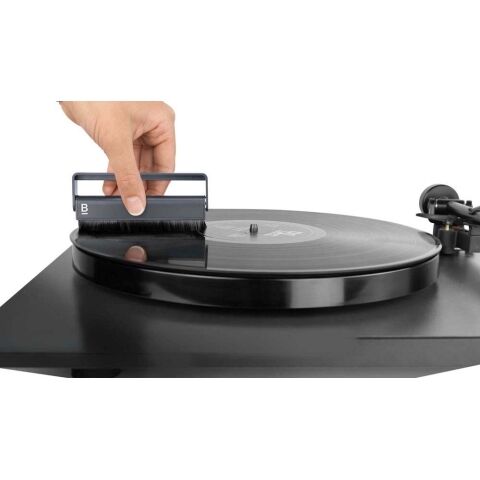 傷をつけないカーブしたベルベットブラシを盤面に回転させることで、レコードの溝から汚れやゴミを効果的に浮き上がらせます(平らなブラシはゴミを押し込んでしまいます)。