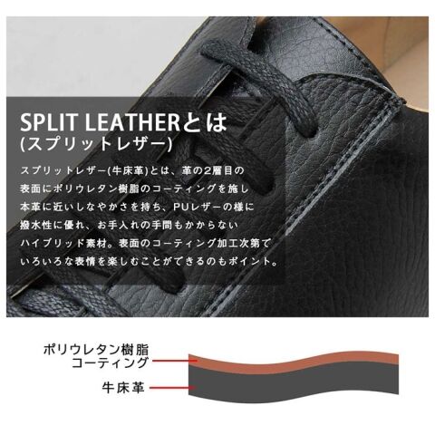 本革のしなやかさとフェイクレザーの撥水性を兼ね備えた、程よいシボ感のあるスプリットレザー(牛床革)を使用!
