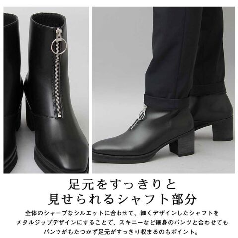 ◆すっきりかっこいい印象を演出! 「glabella Front Zip Heel Boots」が新登場。