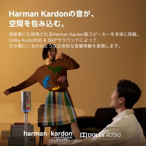 Harman Kardon製スピーカーを内蔵し、Dolby形式対応・360°サラウンドで臨場感たっぷりの音響体験を提供。