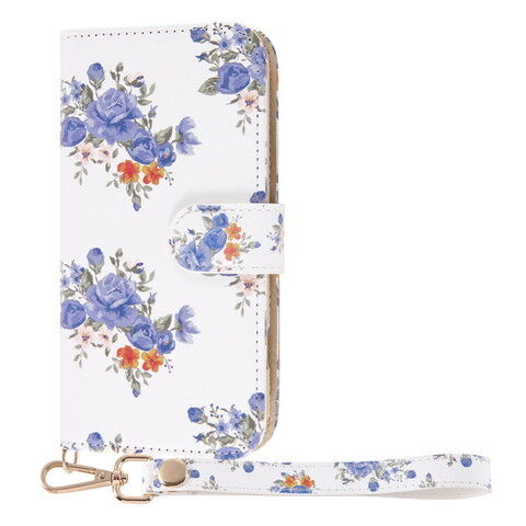 レイアウト らくらくスマホ(F-52B)用 手帳型ケース ハンドストラップ ルーペ付 花柄(ブルー) RT-KFB52ALC/FA 【返品種別A】